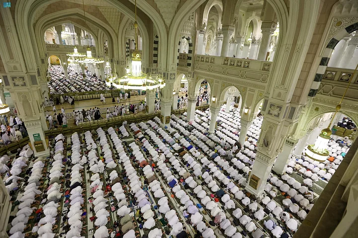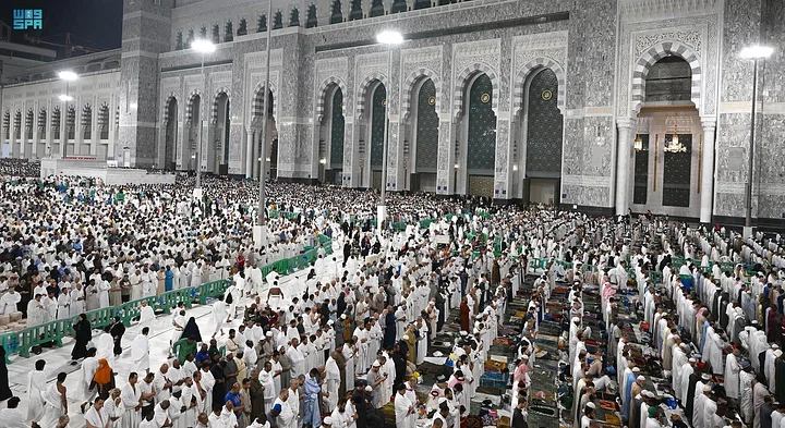 وبدأت وفود الرحمن تتوافد إلى مكة المكرمة منذ الصباح الباكر، وامتلأت جنبات وأدوار المسجد الحرام وساحاته وأروقته بالمصلين.