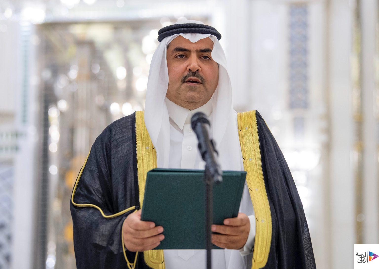 والسفير المعين لدى الجمهورية التركية فهد بن أسعد أبو النصر، قائلين (أُقسم بالله العظيم أن أكون مخلصاً لديني، ثم مليكي ووطني، وأن لا أبوحَ بسر من أسرار الدولة، وأن أحافظ على مصالحها وأنظمتها في الداخل والخارج، وأن أُؤدّيَ عملي بالصدق والأمانة والإخلاص).