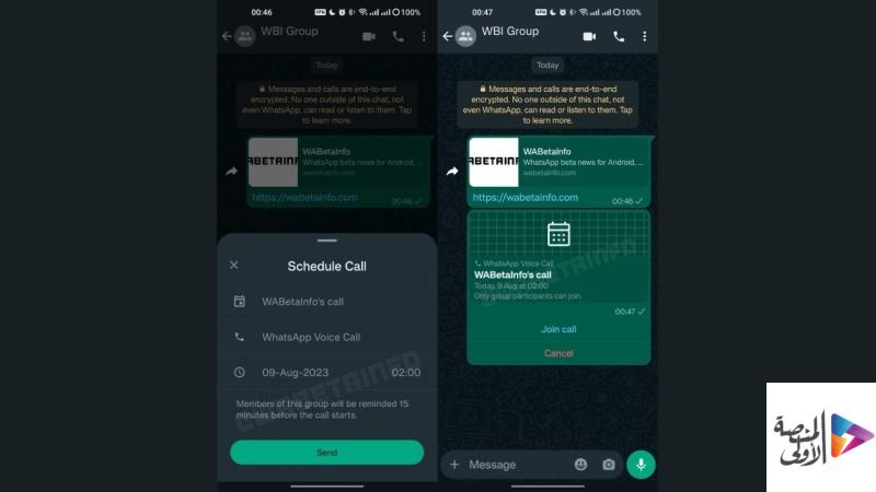 أطلق تطبيق “واتساب” للتراسل الفوري، ميزة جديدة تتيح للمُستخدمين جدولة المكالمات الجماعية وإرسال إشعارات لجميع المُشاركين بموعد المكالمات القادمة بشكل تلقائي.