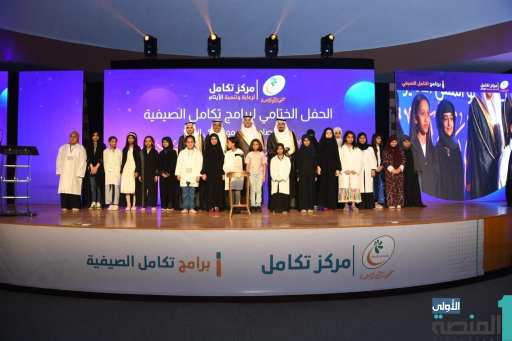 رعى صاحب السمو الملكي الأمير سعود بن طلال بن بدر محافظ الأحساء امس الاثنين بقاعة الشيخ عبدالعزيز بن حمد الجبر بنادي الأحساء الأدبي، حفل ختام برامج تكامل الصيفية التي نظمها مركز تكامل لرعاية وتنمية الأيتام التابع لجمعية البر بالأحساء، بهدف تنمية وتطوير قدرات 140 يتيما ويتيمة بحضور نائب رئيس الجمعية والأمين العام وعدد من الأكاديميين والمهمتين في الموهبة وأمهات وأولياء أمور الطلاب والطالبات الأيتام.