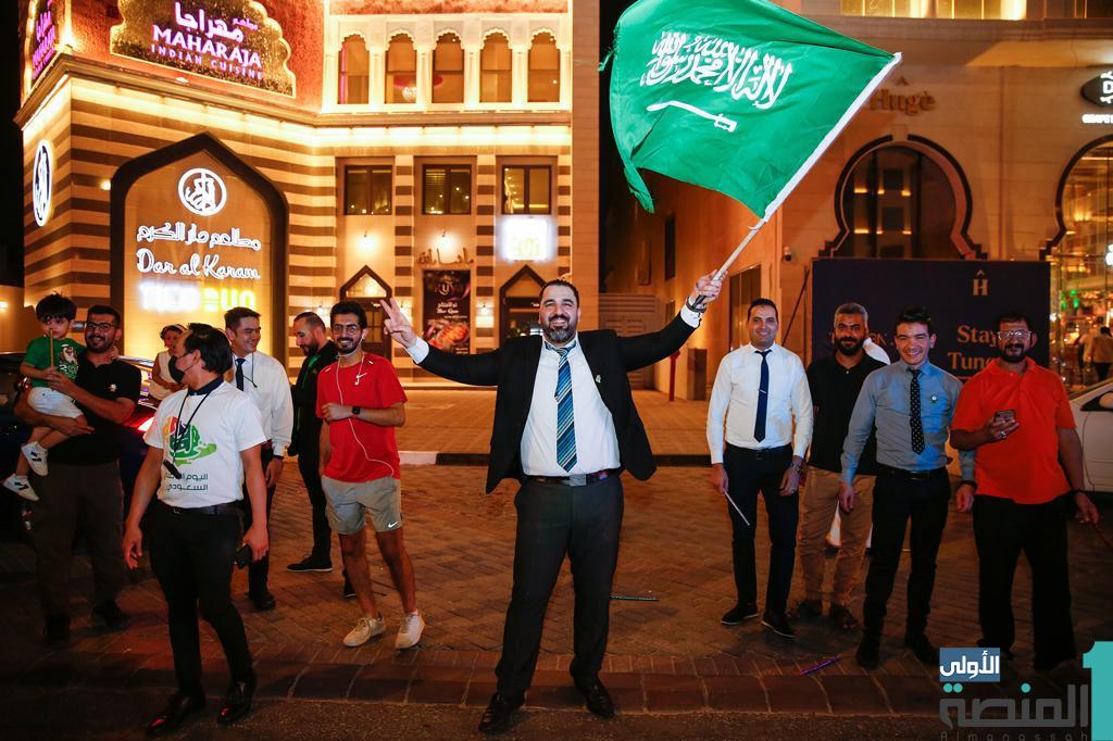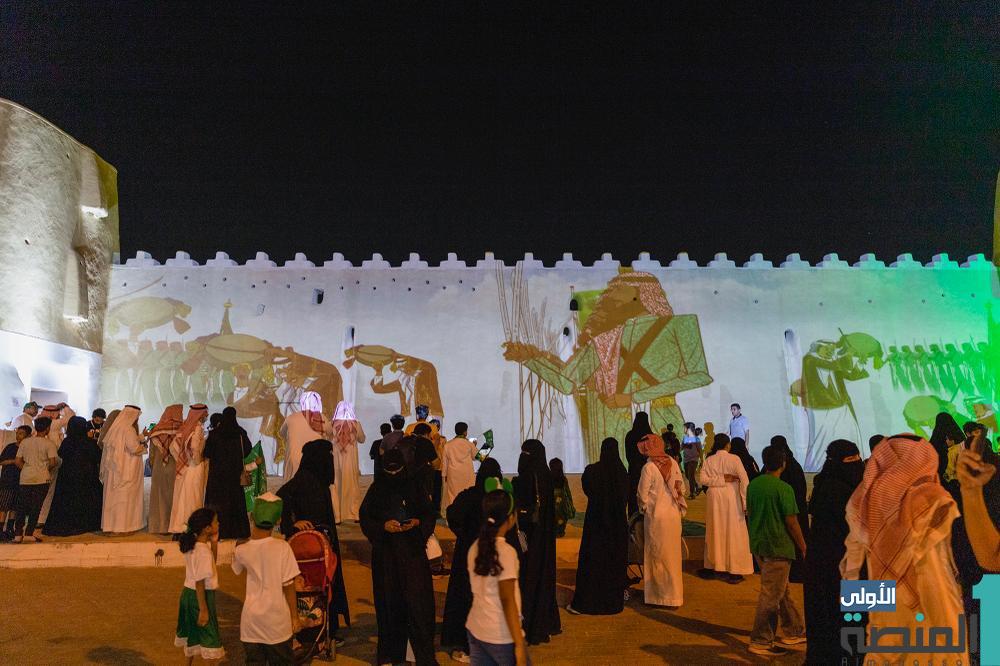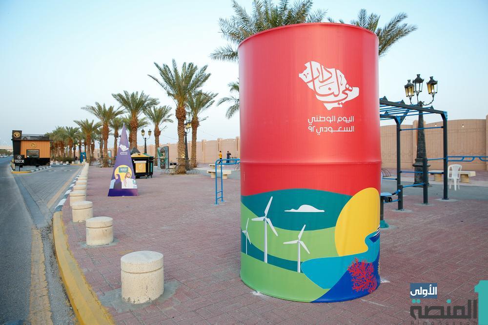 توشّحت المباني وانتشرت الأعلام الوطنية على امتداد الطرق والشوارع والميادين والأنفاق والمواقع المخصصة لاستقبال العائلات والشباب للاحتفال باليوم الوطني 92، فضلاً عن اللوحات التي تحمل عبارات وطنية، وصور القيادة الرشيدة.