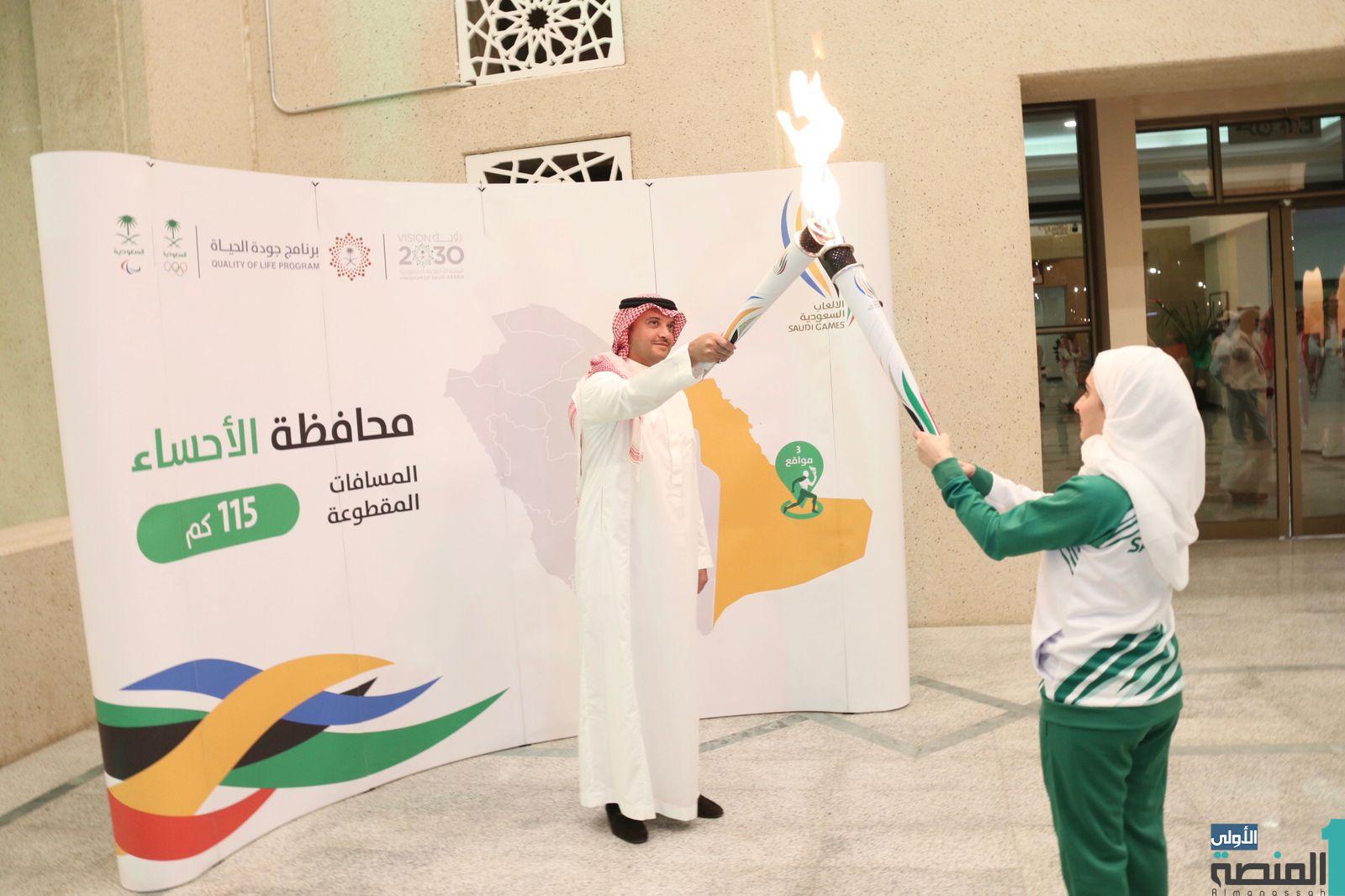 تسلّم صاحب السمو الملكي الأمير سعود بن طلال بن بدر محافظ الأحساء ،اليوم ” الاثنين” في مقر المحافظة شعلة دورة الألعاب السعودية 2022، في إطار جولتها الترويجية ، بحضور صاحبة السمو الأميرة دليل بنت فيصل ال سعود وأعضاء اللجنة المنظمة العليا، وعدداً من الرياضيين والمتطوعين والمتطوعات ، وبحضور سعادة وكيل محافظة الأحساء الأستاذ معاذ بن إبراهيم الجعفري وحضور مدير جولة شعلة الألعاب السعودية المهندس تركي مهرجي، حيث تجولت الشعلة في عدد من المواقع الأثرية في محافظة الأحساء