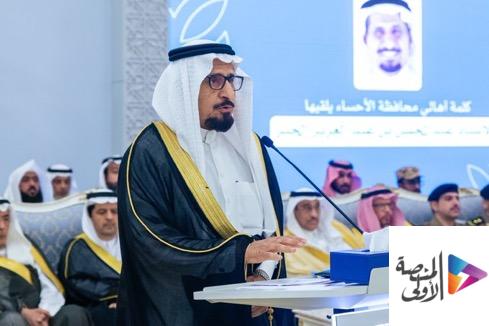 واردف ” من يقلب صفحات التاريخ يرى سجلاً مضيئاً وكتاباً مشرقاً ، طوى بين جوانحه مجداً مؤثلاً وفخراً سامياً ، ظل نوراً في سواد الدُّجى، من وقائع الفداء ومواقف البطولة حتى تحقق الحلم بوحدة المملكة العربية السعودية من شمالها إلى جنوبها ومن شرقها إلى غربها فالتضحية للوطن من ارقى القيم ، واشرف الأخلاق ، وأعلى الرتب فبفضل الله ثم مثل هذه المواقف لجلالة الملك المؤسس و أبنائه البررة تدفقت التنمية وقامت النهضة وحلق الوطن في سماء الرفعة والمجد ، حتى أصبحت المملكة دولة عظيمة لها ثقلها السياسي والاقتصادي وعطائها الخيري والاجتماعي ومكانتها الدولية والإقليمية ، فالأحساء جزء من هذا الوطن العزيز تميزت منذ القدم بتوافر مقومات العيش ومكتسبات البقاء واسرار الرخاء فتتابعت عليها الحضارات ووفدت اليها القبائل ، وجذبت العلماء والادباء ، ونشطت فيها التجارة والأسواق ، وتعلق بها أهلها، وانني باسم كل مواطن نبيل اشكر حكومتنا الرشيدة على ما تقدمه من خدمات جليلة كرست الامن وخلقت الرخاء ومنعت الجريمة والفساد واعبر عن شكرنا لصاحب السمو الأمير سعود بن نايف بن عبد العزيز امير المنطقة الشرقية لمتابعته وتوجيهاته الحثيثة كما اعبر عن امتناننا لسمو نائبه على هذه الزيارة الغالية التي هطل نداها الطيب على قلوبنا واحاسيسنا مقدرين لسموه الكريم الوقت والجهد والمشاعر الطيبة ، واسال الله أن يحفظنا جميعا ويحمي وطننا ويزيده عزة”.