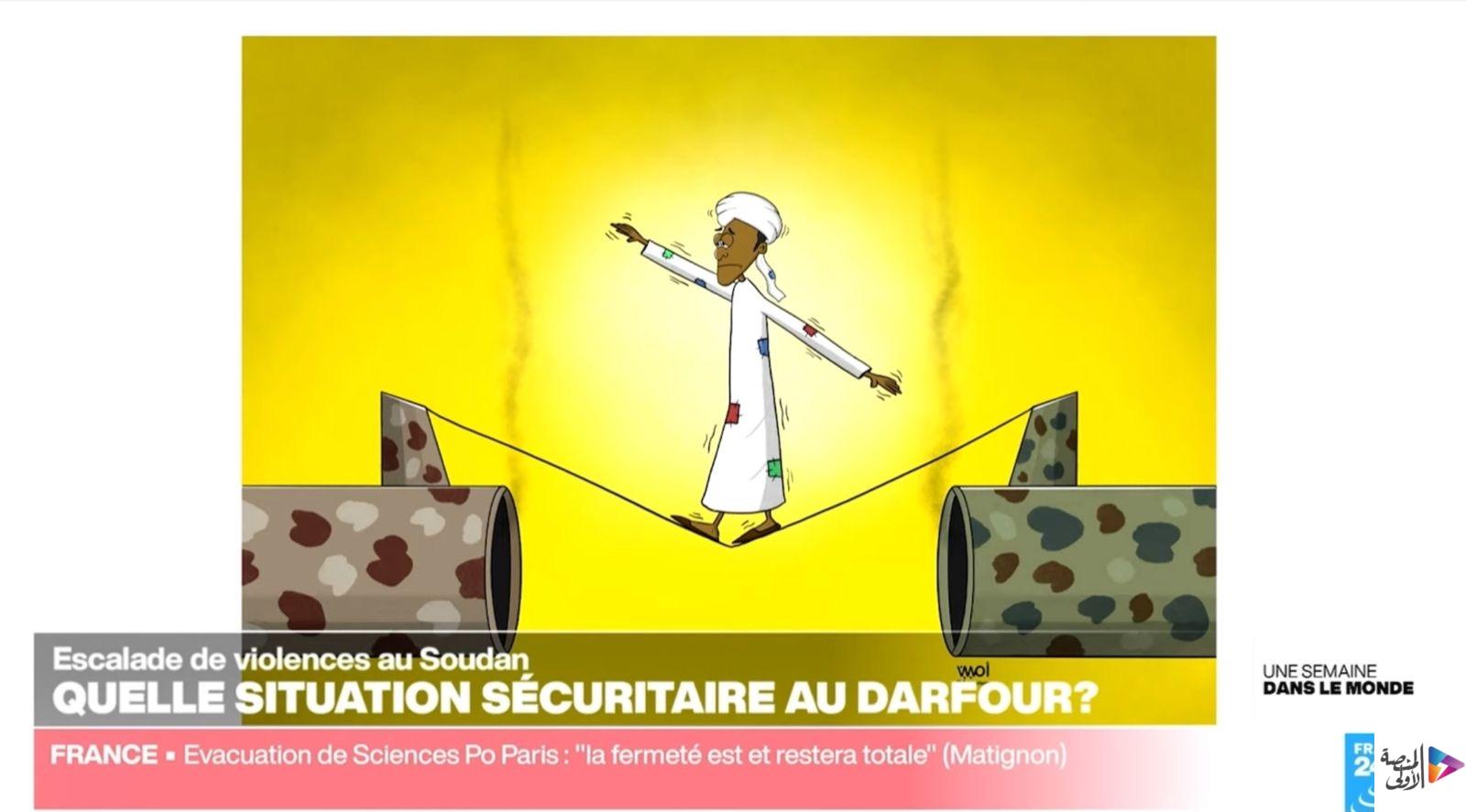 ومؤخرا تفاعلت القناة الفرنسية ” فرانس 24 ” من خلال برنامجها ” أسبوع في العالم ” بعرض أعمالي، حيث كان الأول بعنوان ” طريق مسدود” ويتحدث عن المهاجرين ومعاناتهم والثاني بعنوان ” بين نارين ” يتحدث عن حال المواطن السوداني أثناء الحرب ، فدائما الكاريكاتير الصامت رسالته تصل إلى أقصى بقعة في العالم وهو الأقوى لأنه يخاطب جميع شعوب العالم رغم اختلاف لغاتهم .