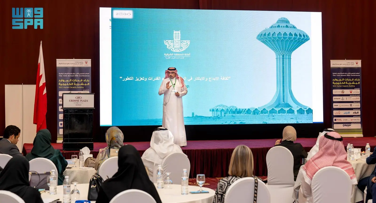 استعرضت أمانة المنطقة الشرقية اليوم تجربتها في بناء القدرات وتعزيز التطور وثقافة الإبداع والابتكار في المنظمات، وذلك في المؤتمر الخليجي لتنمية الموارد البشرية المقام في مملكة البحرين في نسخته الثانية عشرة تحت شعار “بناء قدرات الموارد البشرية الخليجية”.