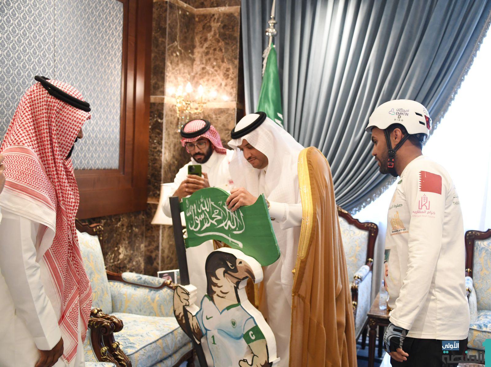 استقبل صاحب السمو الملكي الأمير سعود بن طلال بن بدر محافظ الأحساء بمكتب سموه بمقر المحافظة اليوم ” الأربعاء ” الرحالة السعودي فهد بن إبراهيم اليحيا، الذي يقوم برحلة على الدراجة الهوائية من مدينة الرياض مروراً بالمنطقة الشرقية ومنها محافظة الأحساء وتنتهي في سفارة خادم الحرمين الشريفين بدولة قطر تحت شعار “معاك يالأخضر”.