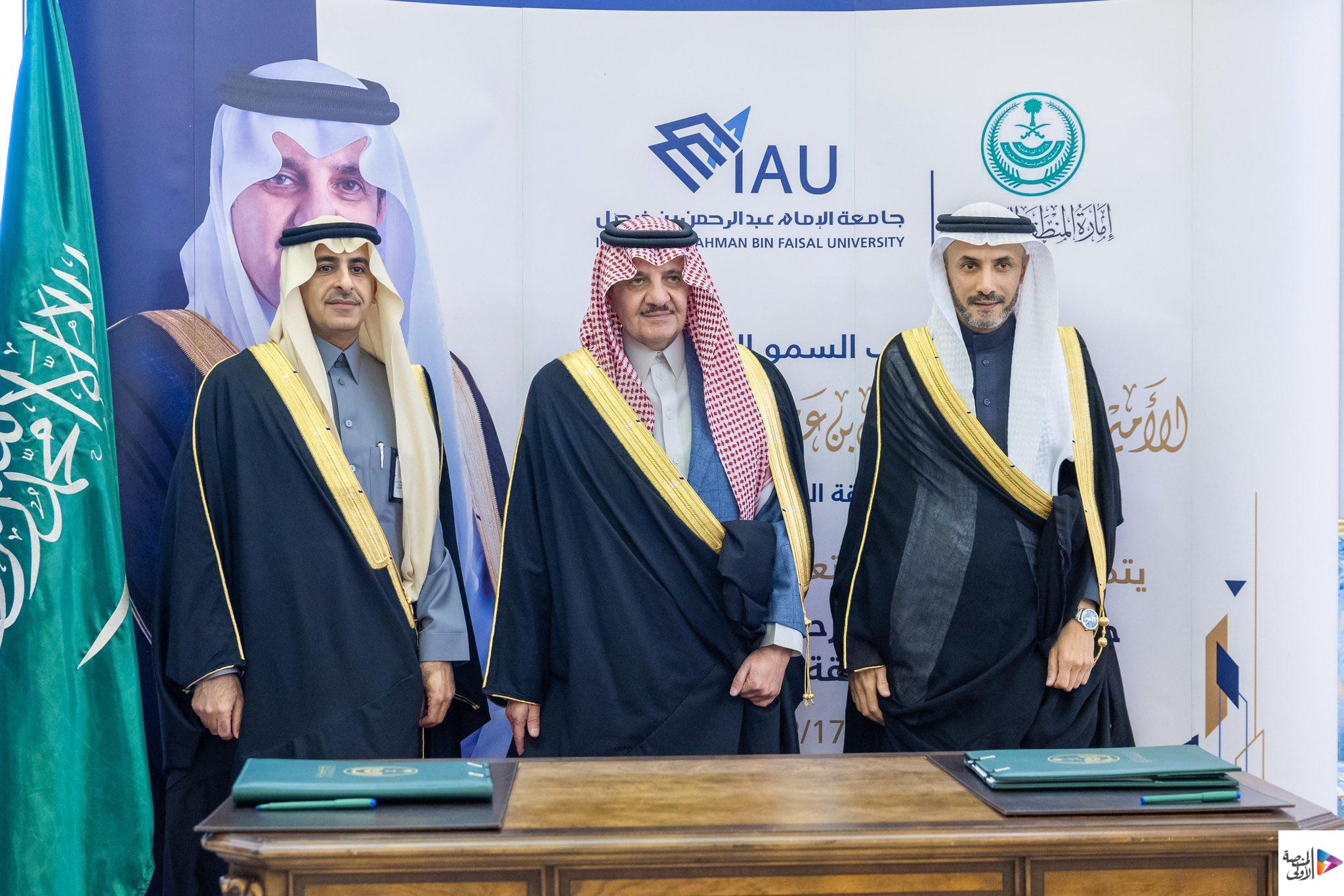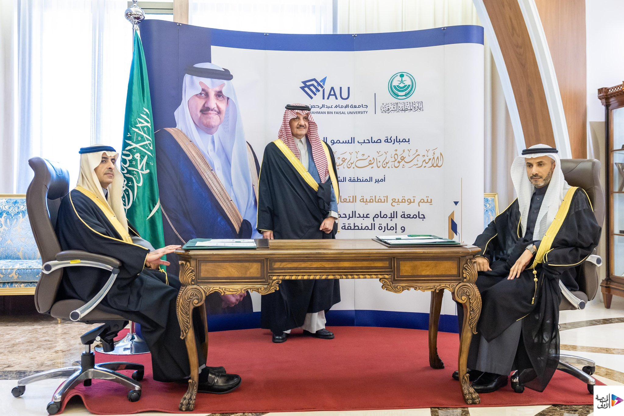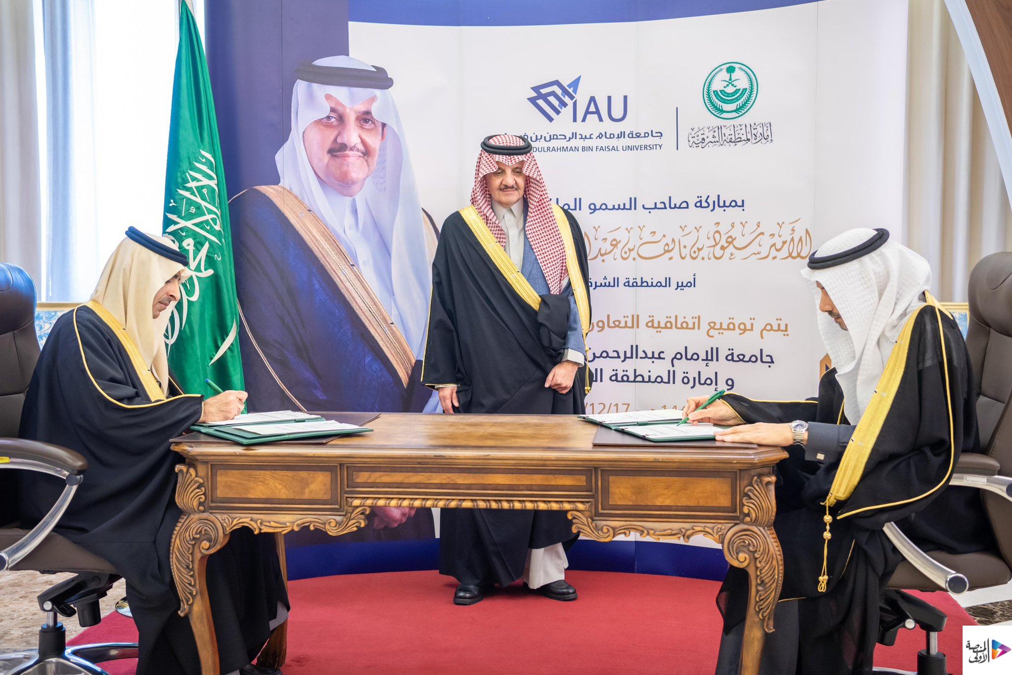 وقع عن إمارة المنطقة الشرقية سعادة وكيل الإمارة الأستاذ تركي بن عبدالله التميمي، وعن الجامعة رئيس الجامعة المكلّف الأستاذ الدكتور فهد بن أحمد الحربي.