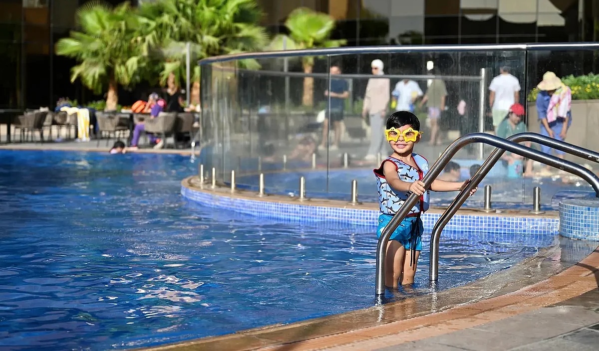 وتلتزم إدارات الفنادق والمنتجعات بتطبيق أعلى معايير السلامة، من خلال وجود منقذين متخصصين، وتفعيل بروتوكولات دقيقة لمراقبة جودة المياه وصيانة المرافق بشكل دوري، مما يضمن تجربة آمنة ومطمئنة للزوار. وتشمل خيارات الإقامة جلسات عائلية مغلقة وغرفًا مطلة على المسابح.