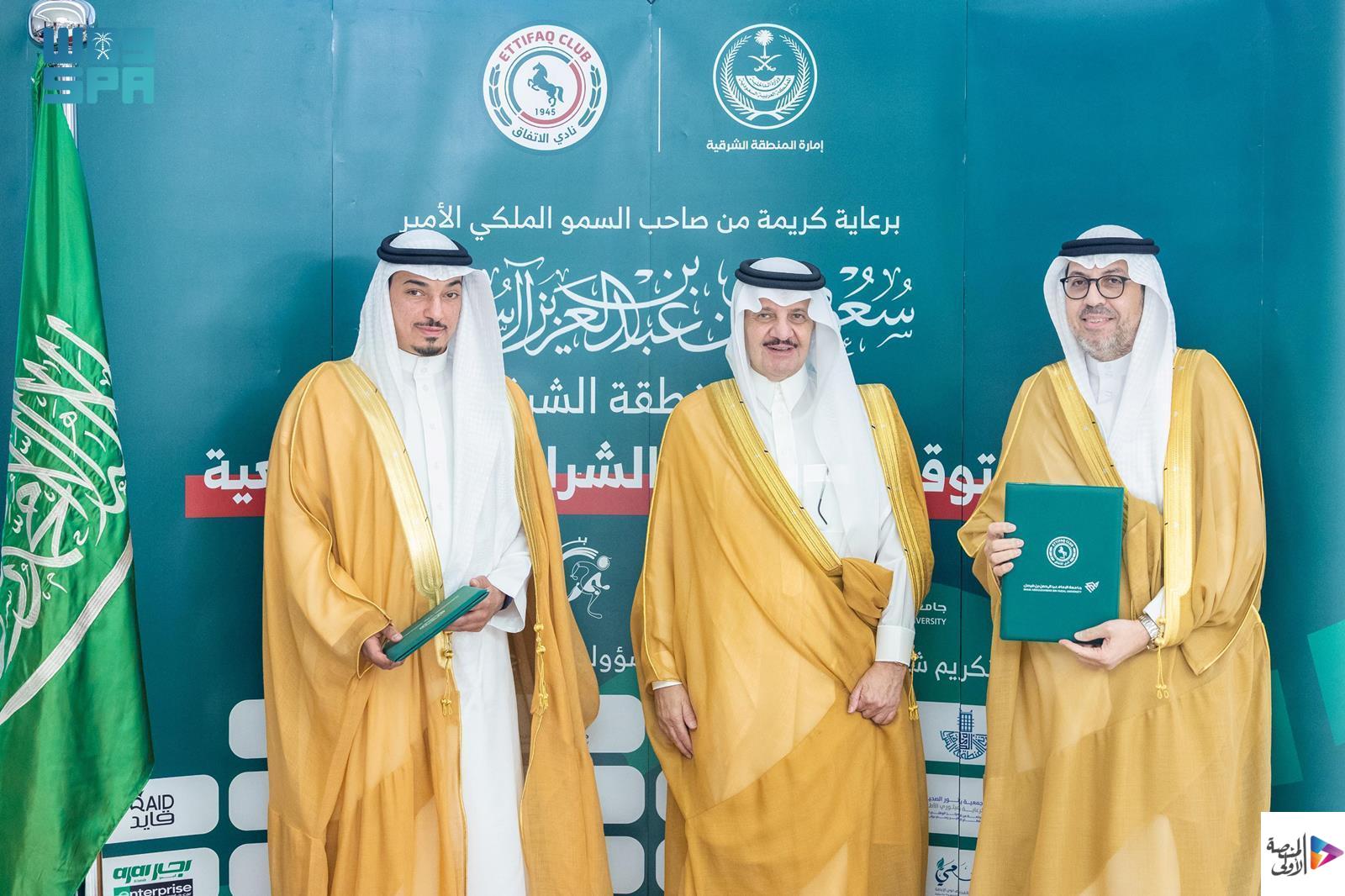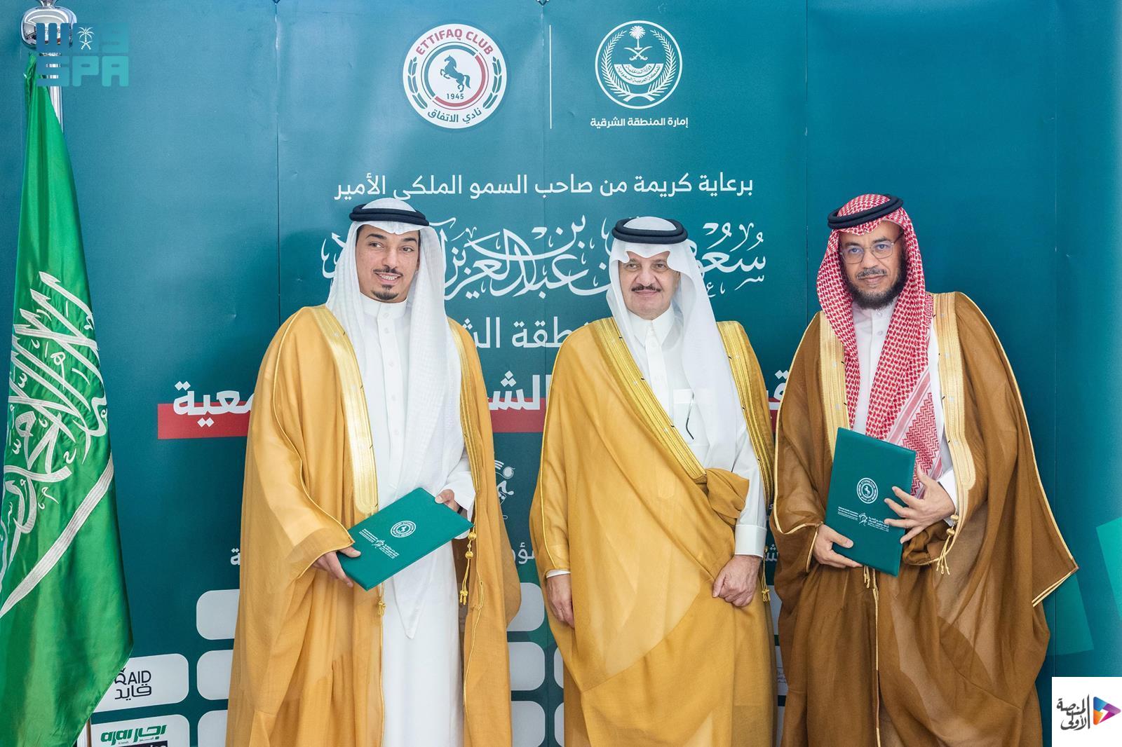 وشهد سمو أمير المنطقة الشرقية توقيع عدد من الاتفاقيات المجتمعية، شملت اتفاقية تعاون بين نادي الاتفاق وجامعة الإمام عبدالرحمن بن فيصل، واتفاقية مع جمعية بتور الصحية لرعاية مبتوري الأطراف.