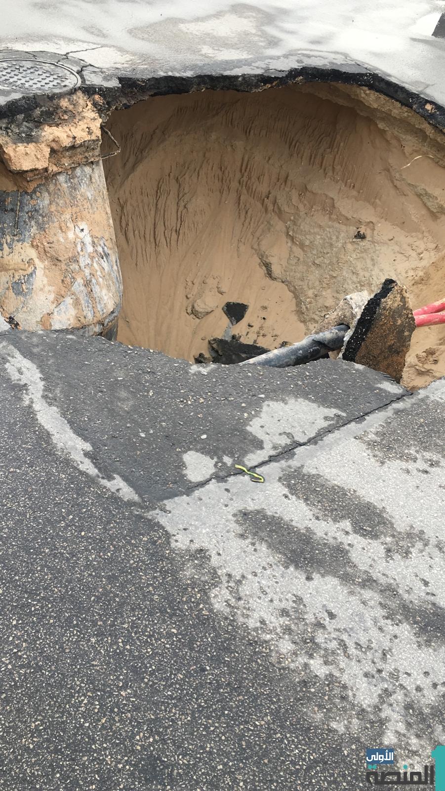 انهيار أرضي يُفاجى المارة في الهفوف (صورة)
