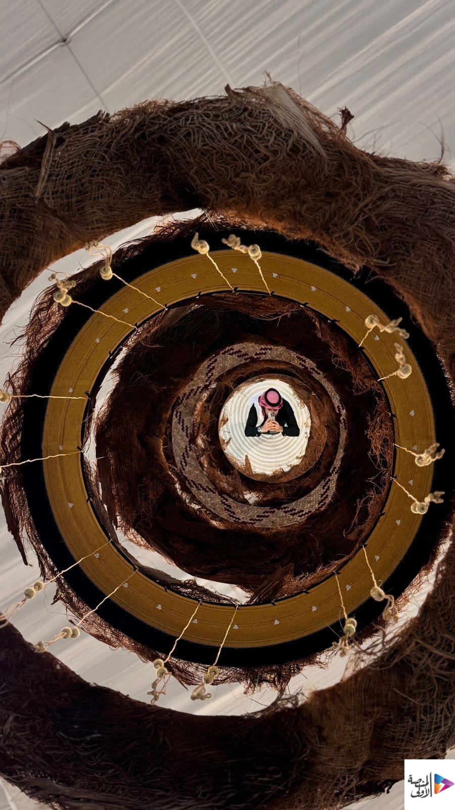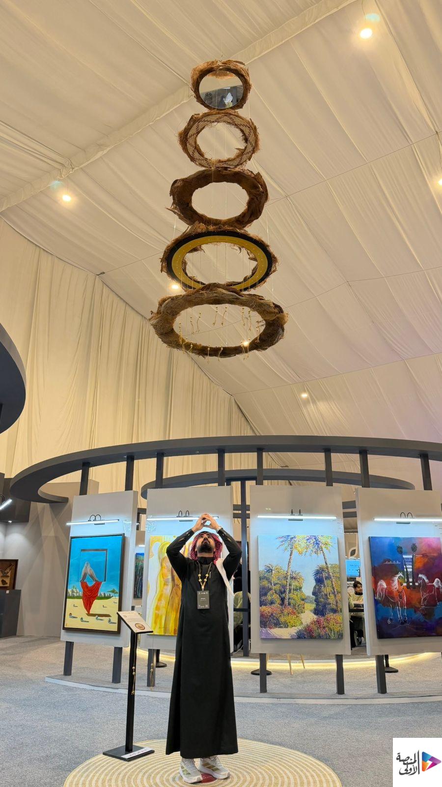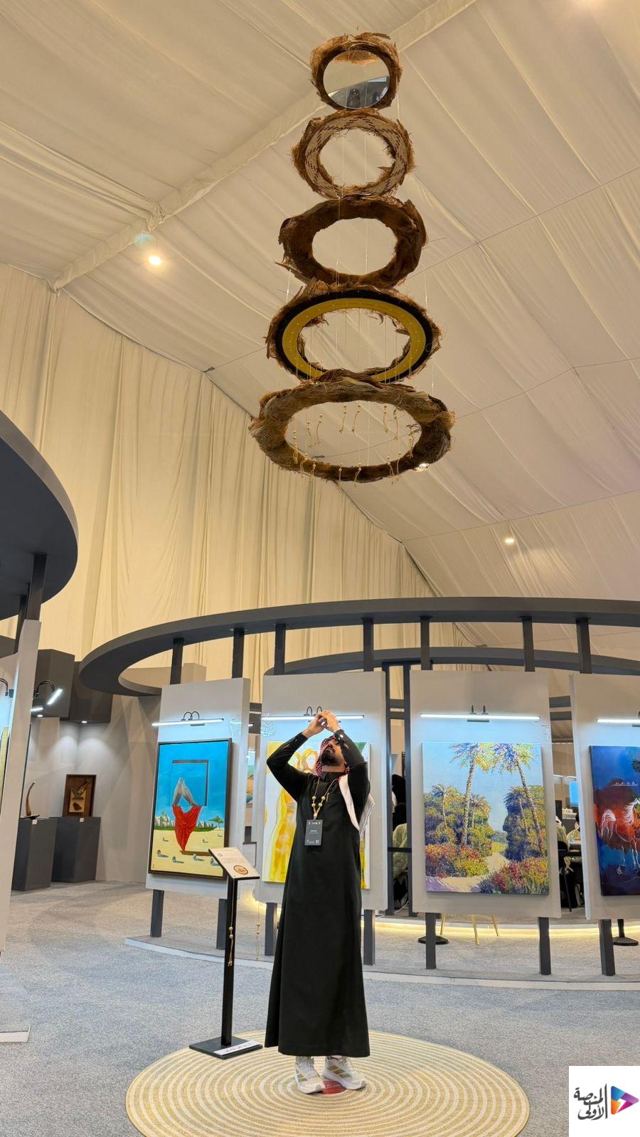 وعن مشاركته في المعرض، ذكر التمار أن معرض هذا العام يتميز بالحضور اللافت للأعمال المعاصرة، من خلال عمله المفاهيمي «مدارات الواحة | Oasis Orbits»، وهو عمل مستلهم من بيئة الأحساء وواحة التمور بوصفها أكبر واحة نخيل في العالم. وأضاف أن عمله يستحضر امتداد النخلة ودورة الحياة عبر مدارات دائرية متتابعة، موظفًا خامات النخلة من الخوص والليف والخيش، إلى جانب «زري» البشت الحساوي بوصفه رمزًا ثقافيًا أصيلًا، في حوار بصري يجمع بين الحرفة اليومية والبعد الرمزي للهوية.
