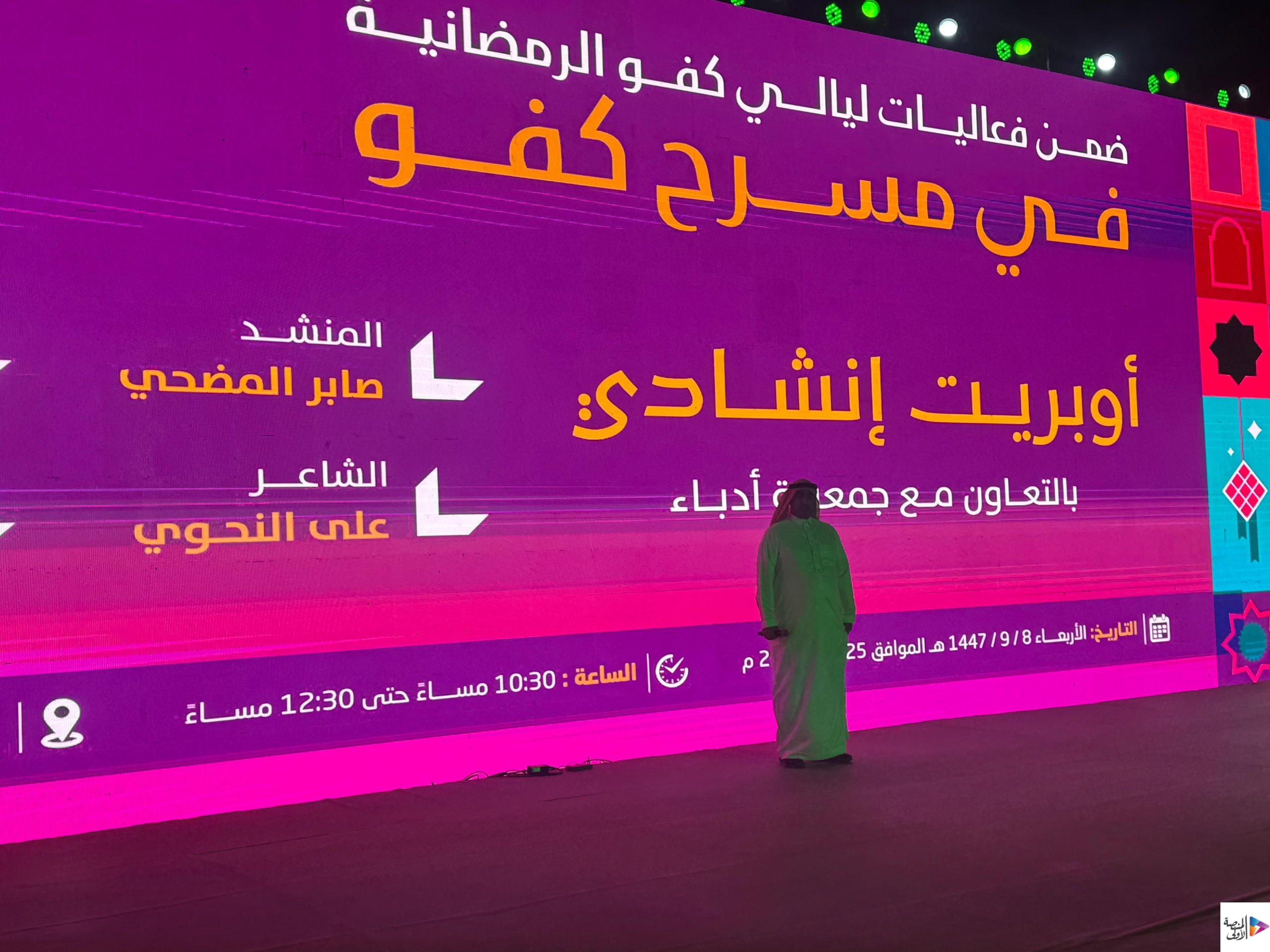 نظّمت جمعية أدباء الأحساء أمسية وطنية بعنوان “الأوبريت الإنشادي والشعري”، مساء الأربعاء 8 رمضان 1447هـ الموافق 25 فبراير 2026م، في منتزه الملك عبدالله البيئي، بحضور رئيس مجلس الإدارة الدكتور محمود بن سعود آل ابن زيد ونائبه الدكتور محمد البشير ومنسق الفعالية عضو مجلس الإدارة الأستاذ صالح الحربي، إلى جانب وكيلة جامعة الملك فيصل للشراكات والتطوير الدكتورة أنوار بنت علي الظفيري، والأستاذة بينه الملحم المستشارة الإعلامية لرئيس الجامعة، والدكتورة إيمان الدوغان مستشارة وكيل الجامعة للدراسات العليا والبحث العلمي، وجمعٍ من المثقفين والأدباء ورجال وسيدات المجتمع، احتفاءً بذكرى يوم التأسيس واستحضارًا لعمق الدولة السعودية.