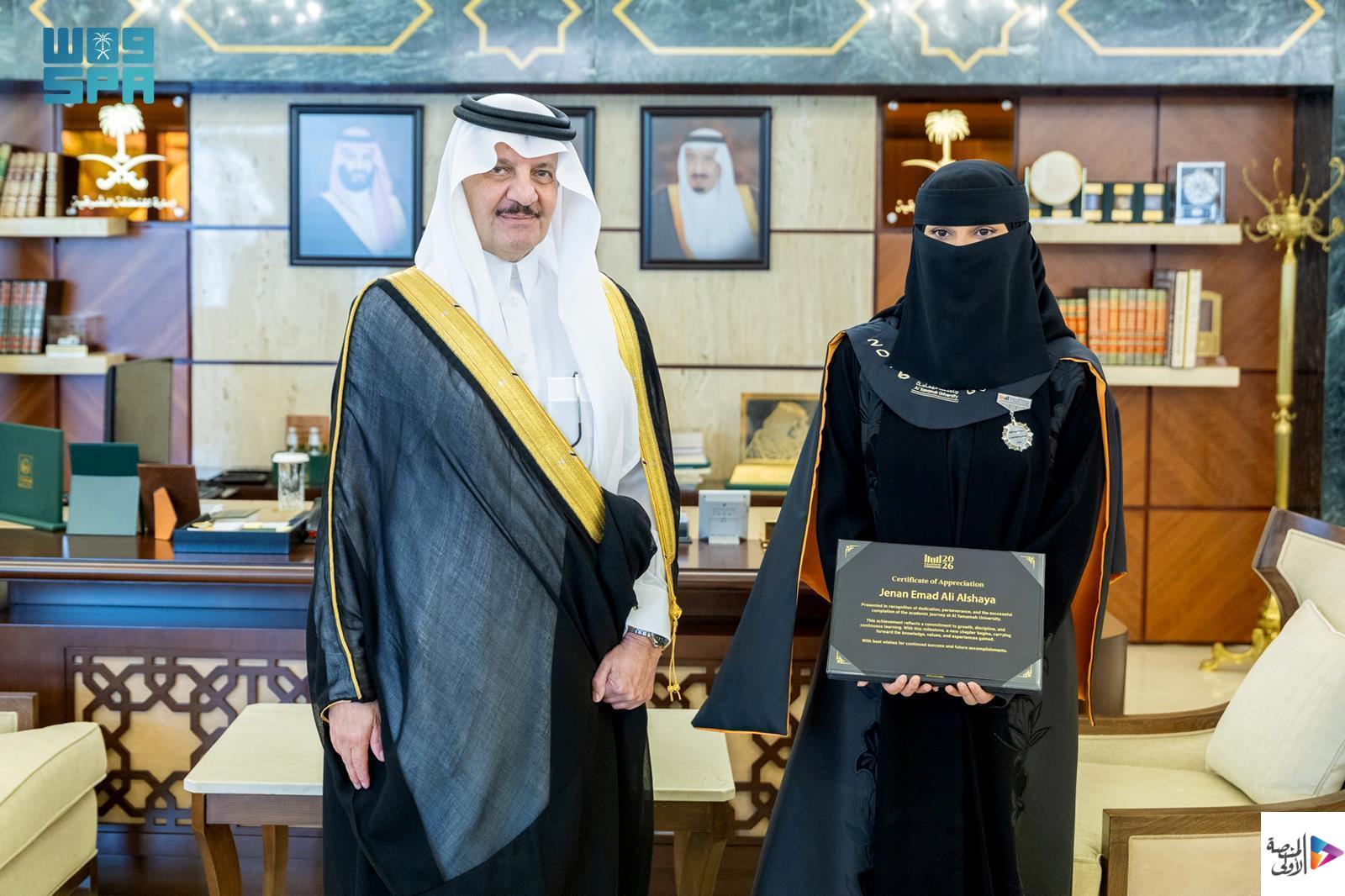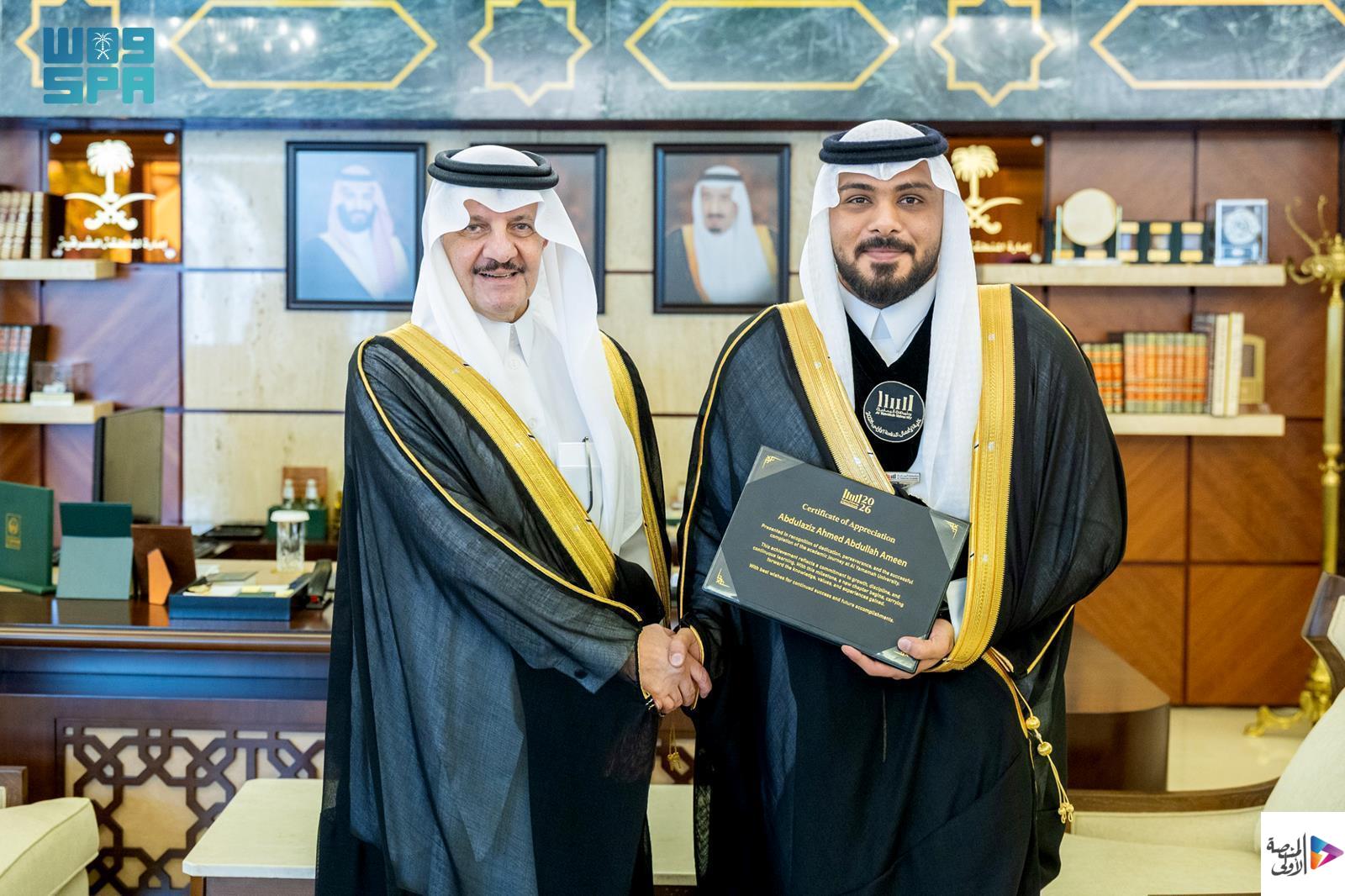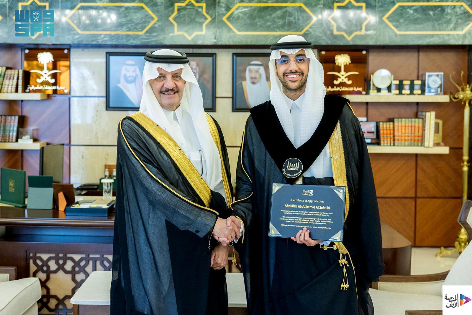 استقبل صاحب السمو الملكي الأمير سعود بن نايف بن عبدالعزيز أمير المنطقة الشرقية اليوم في مكتبه بديوان الإمارة، خريجي الدفعة الأولى من جامعة اليمامة في المنطقة الشرقية، بحضور الرئيس التنفيذي لليمامة التعليمية عبدالرحمن بن خالد الخضير، ورئيس الجامعة الدكتور يزيد بن محمد السحيباني.