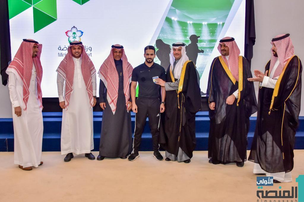 وقلّد سموّه الشارة الدولية للحكم الدولي سعد السبيعي ، بمشاركة زملاءه في اللجنة الحكام بمحافظة الأحساء ، متمنياً سموّه له التوفيق في مشواره في تحكيم مباريات كرة القدم