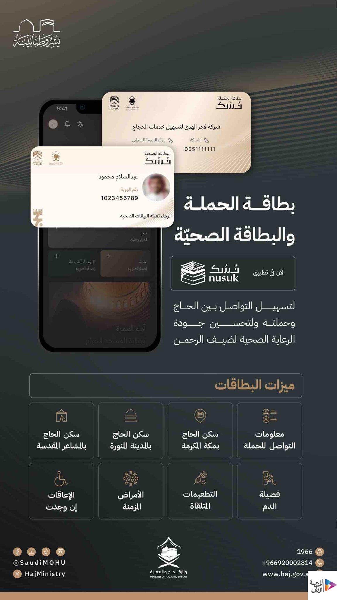 وزارة الحج: “البطاقة الصحية” و”بطاقة الحملة” إضافتان جديدتان في تطبيق نسك