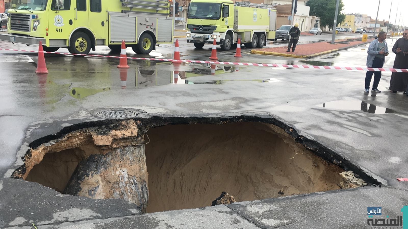 انهيار أرضي يُفاجى المارة في الهفوف (صورة)