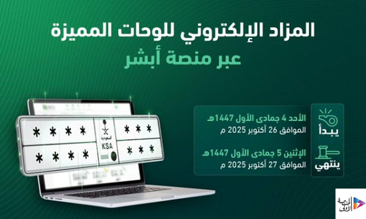 المرور يطرح مزاد اللوحات المميزة إلكترونيًا عبر “أبشر”