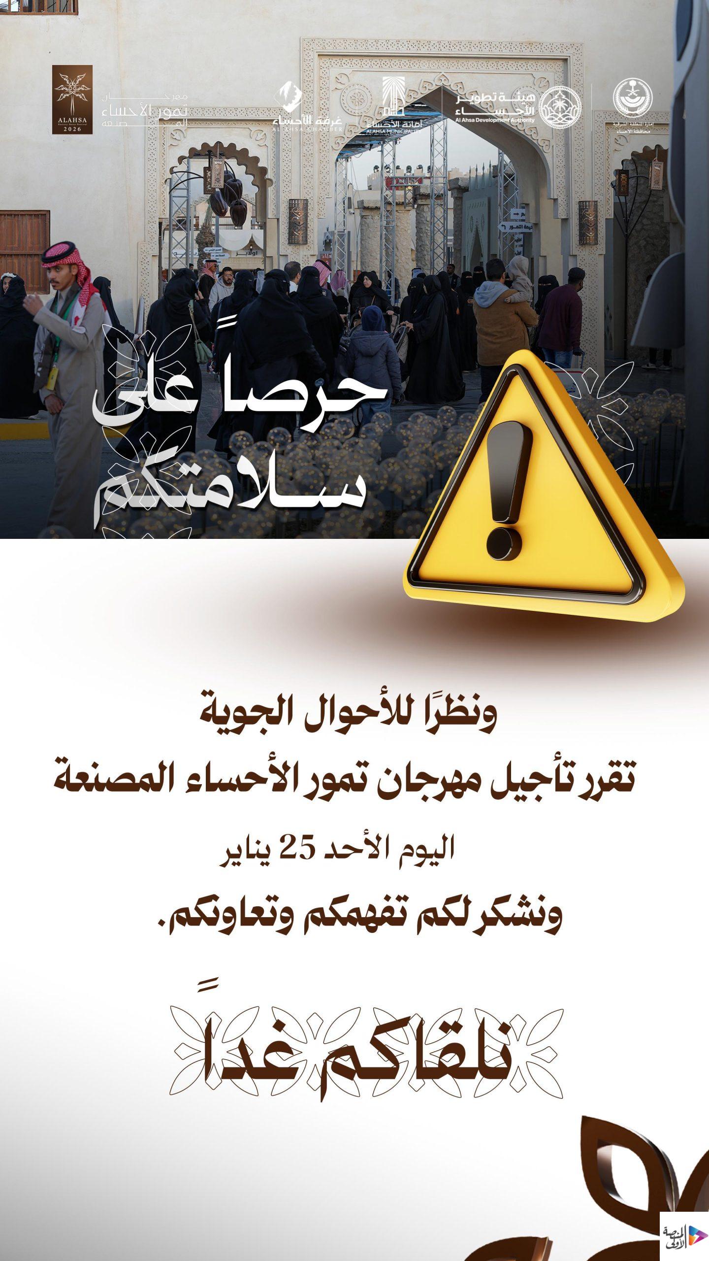 تأجيل مهرجان تمور الأحساء المصنّعة بسبب الأحوال الجوية