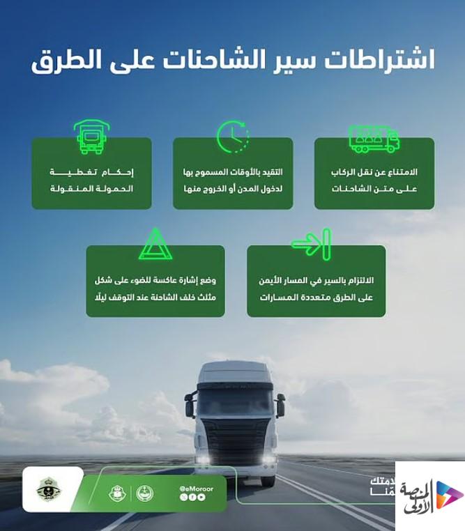 “المرور”: التزام سائقي الشاحنات بالأنظمة يرفع مستوى السلامة على الطرق