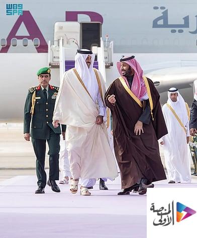 ولي العهد يستقبل أمير قطر لحظة وصوله إلى الرياض